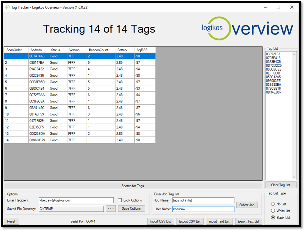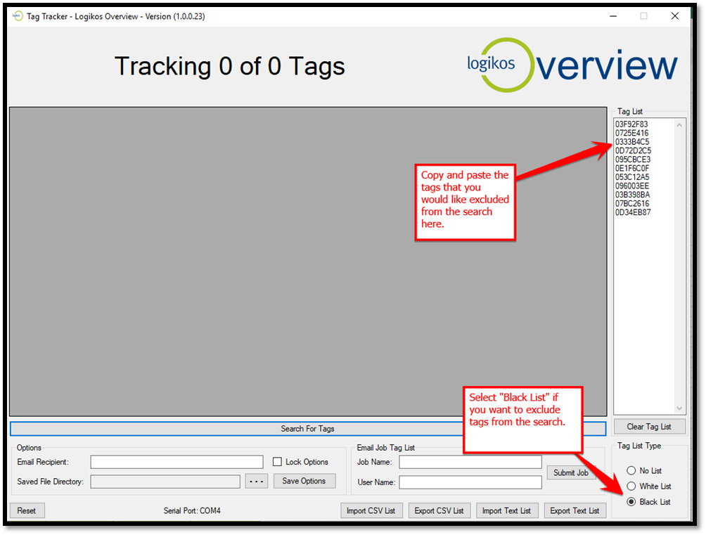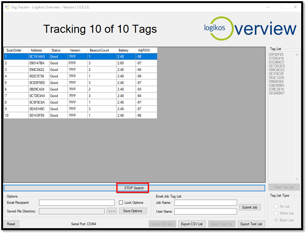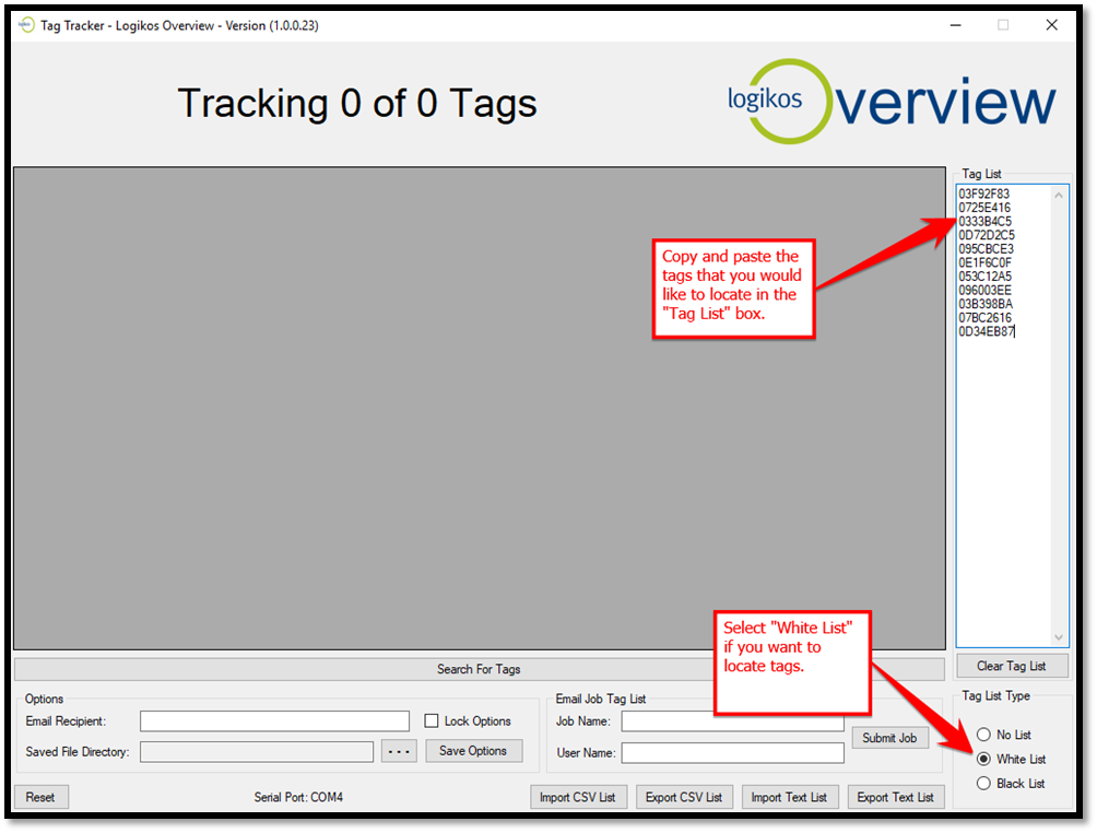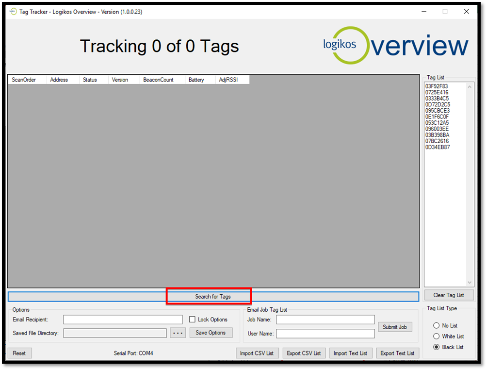 With the Tag Sniffer still plugged into your computer, select the COM port noted in Step 3 above.