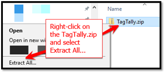 Download and extract the “Tagally.zip” software emailed to you by an Overview Customer Representative.